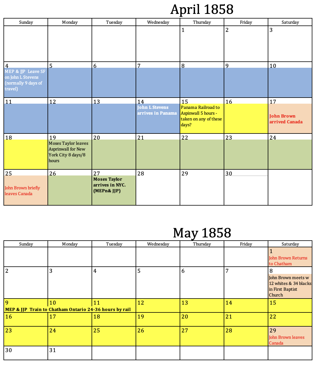 The figure below outlines when MEP and JJP traveled and the timeframe wherein they could have met easily met with Brown.