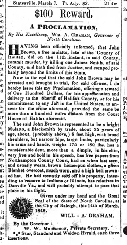 How does Jane Park being born in North Carolina align with the stories of James W Smith’s family narrative? First, we need to understand how did James become free given his mother was enslaved? A person’s status as free or enslaved in the US was based on their mother’s standing. Was James emancipated by his father? Who was his father? Research on this question continues. While trying to research this question, an 1848 notice in William Lloyd Garrison’s The Liberator was observed. A white man named James Smith was murdered in 1848 by a free man of color, a blacksmith named James Brown, outside Weldon, North Carolina. James W Smith was known to be supportive of The Liberator and friendly with Garrison. Was this Garrison’s way of informing others of Smith’s passing? Or was it simply the notice to the community a free man of color, James Brown, was named as a murderer? Or a simple coincidence that directed research to the area? Records for what became of Mr. Brown after he was arrested have not been located nor has information providing additional information on the “James Smith” that was murdered. There were many prominent Smiths in the area.
